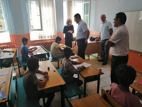 Çocukları ve yapılan eğitimleri yerinde gözlemek üzere Hendek Kaymakamı Orhan Burhan ve İlçe Milli Eğitim Müdür V. Bedir Bayram Mustafa Asım İlkokulunu ziyaret ettiler.