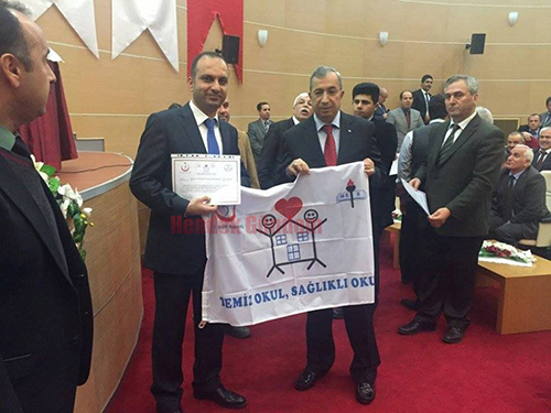 Kazımiye Cumhuriyet Ortaokulu Müdürü Kenan Demir, Kazımiye Cumhuriyet İlkokulu ve Ortaokulu Beyaz Bayrak ödülünü alarak temiz ve sağlıklı okul olduğunu tescillemiştir.
