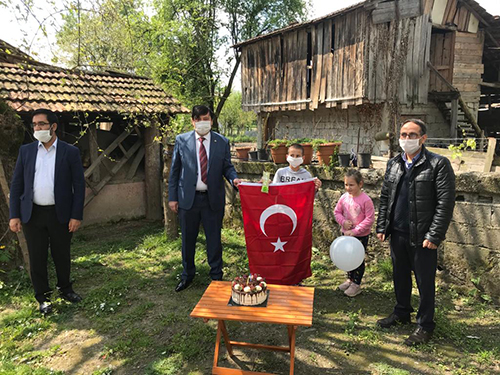 23 Nisan Ulusal Egemenlik ve Çocuk Bayramı Dolayısıyla; İlçe Milli Eğitim Müdürümüz Sayın Sabri Doğan, Şube Müdürü Bedir Bayram ve Cumhuriyet İlkokulu Müdür Yardımcısı Hüsamettin Nünükoğlu ile birlikte Cumhuriyet İlkokulu 1/C Sınıfı Öğrencisi Yağız Makak'ı evinde ziyaret ederek bayramını kutladı. İlçe Milli Eğitim Müdürü Sabri Doğan ziyaretinde Öğrenciye Şanlı Türk Bayrağı ve çeşitli hediyeler takdim ederek iyi dileklerde bulundu.
