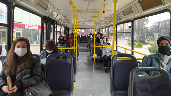 KOVİD-19 tedbirleri kapsamında otobüs dezenfekte edilirken sınava katılacak adaylar HES kodu sorgulaması, maske ve sosyal mesafe kurallarına uygun şekilde otobüse alındı. Sınava giren adaylar Başkan Turgut Babaoğlu'na ulaşım desteği nedeniyle teşekkür etti.