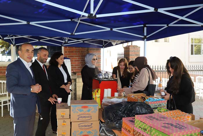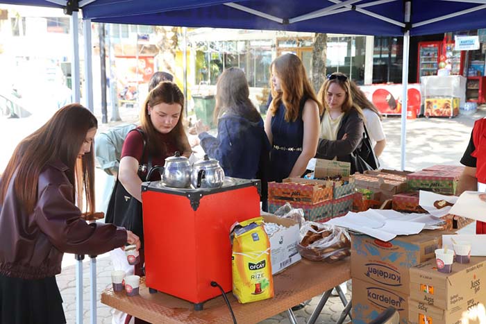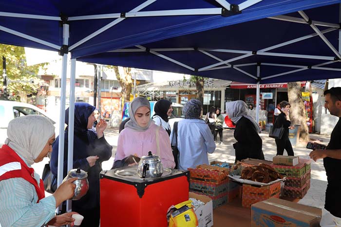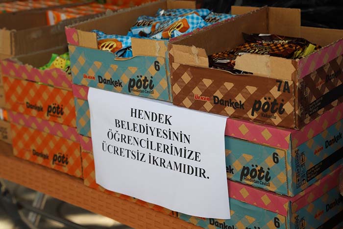 Sakarya Üniversitesi Hendek Eğitim Fakültesi girişinde kurulan stantta öğrencilere kek, çay ve meyve suyu ve simit ikramında bulunarak Hendek’in misafirperverliğini yansıttı.