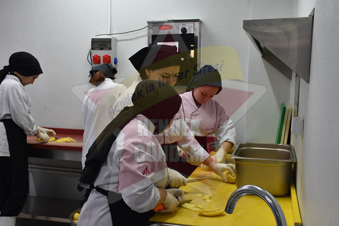 Büyük kazanlarda çorba, pilav yapmayı öğreniyorlar ve mesleğe adım atmış oluyorlar. Öğrenciler, mesleği de aslında merkezinde öğrenmiş oluyor. Bu durum hem öğrencileri hem de velileri mutlu ediyor.