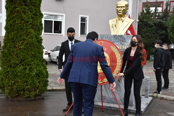 Hendek Kaymakamlığı önünde bulunan tören alanındaki Atatürk Anıtı’na Hendek İlçe Milli Eğitim Müdürü Sabri Doğan tarafından çelenk koyulması, saygı duruşu ve İstiklal Marşı’nın okunmasıyla başlayan etkinlikler daha sonra Hendek Belediyesi Kültür ve Sosyal İşler Toplantı salonunda devam etti.