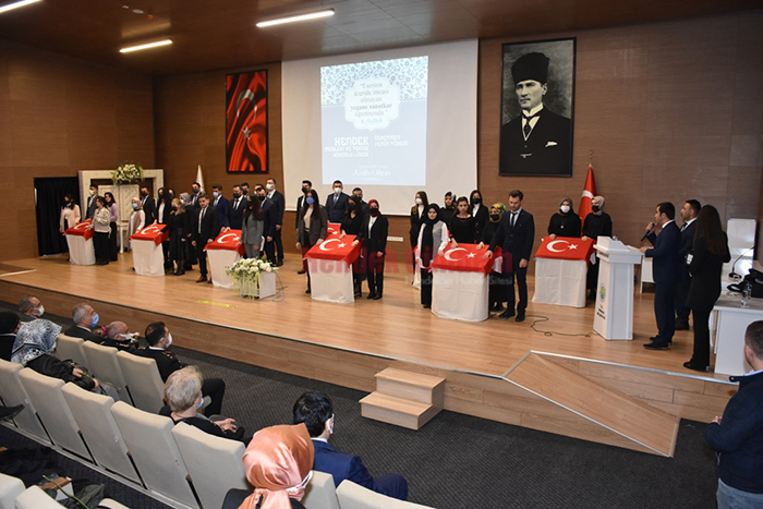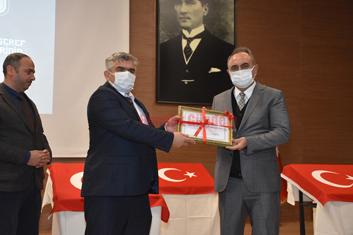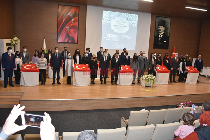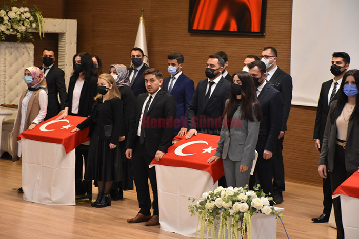 Çelenk töreninin ardından protokol üyeleri Hendek Belediyesi Kültür ve Sosyal İşler Müdürlüğü Toplantı salonunda düzenlenen etkinliklere katıldı.
