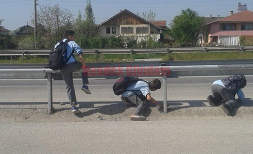 D-100 Karayolunda bariyerleri teker teker atlayanveya altından geçen Öğrenciler, canları pahasına büyük tehdit altında Okula gitmek zorunda kalıyor.