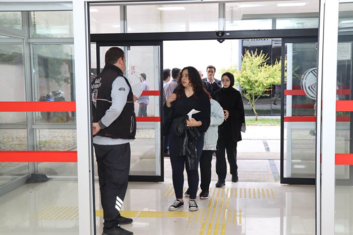 Sabah saatlerinde sınava girecekleri okul binalarına aileleriyle birlikte gelen öğrenciler, önümüzdeki hafta ÖSYM sınavında uygulanacak tüm kurallara uygun şekilde üst araması ve belge kontrolünün ardından salonlara alındılar.