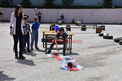 Türkçe Öğretmeni Dilek Gülteber koordinesinde yapılan etkinliklerde 24 Öğrenci oluşturdukları Kırmızı ve Beyaz isimli 2 grupta parkurları birinci olarak bitirebilmek için kıyasıya mücadele etti.
