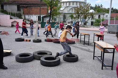 Hendek Dikmen Ortaokulu Öğrencileri sınavlarının bitmesinin ardından Okul bahçelerine kurdukları parkurlarda stres attı.