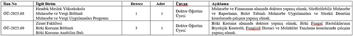 İlanla; 2 doktor öğretim ve 12 öğretim görevlisi alınacak. Kadrolar için ilanın Resmî Gazete’de yayımlandığı tarihten itibaren 15 gün içerisinde başvuru yapılabilecek.