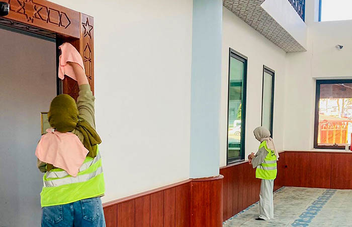 Topluluğun akademik başkanı ve ilgili dersin koordinatörü Öğretim Görevlisi Sezgin Bıçak da öğrencilere eşlik etti. Camide bulunan camları, mobilyaları, minberi, mihrabı, müezzin mahfilini silen öğrenciler halıları süpürerek birçok yerin de temizliğini yaptılar.
