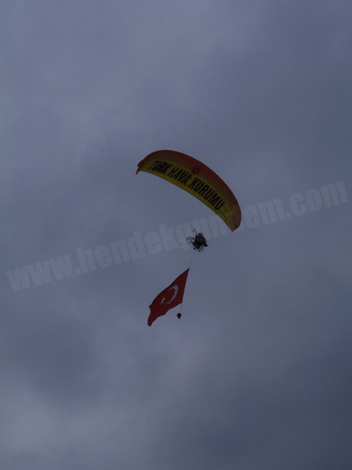 Türk Hava Kurumu Proje Koordinatörü ve Yamaç Paraşütü Öğretim Pilotu Orhan Özgülbaş tarafından Hendek semalarında gösteri uçuşu gerçekleştirdi.