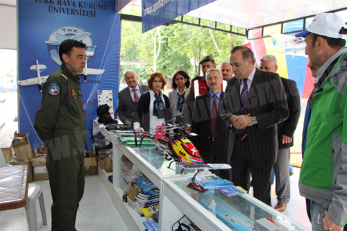 Türk Hava Kurumu standının açılışını Hendek Kaymakamı Mustafa Ayhan gerçekleştirerek Türk Hava Kurumu Üniversitesi, yapılan projeler ve ürünler hakkında bilgiler aldı.