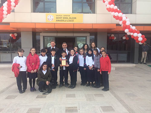 Ay Yıldız’ın çocukları temalı Ortaokullar arası İstiklal Marşını koro halinde seslendirme yarışmasında Hendek Birincisi olarak yarışmaya katılma hakkı kazanan ve İlde yapılan finalde Sakarya üçüncüsü olan Murat Nişancı Ortaokulu müzik korosu Serdivan Şehit Erol Olçok Anadolu Lisesinde düzenlenen törende ödülünü Sakarya Büyükşehir Belediyesi Başkan Vekili Şenay Sakal’ın elinden aldı.