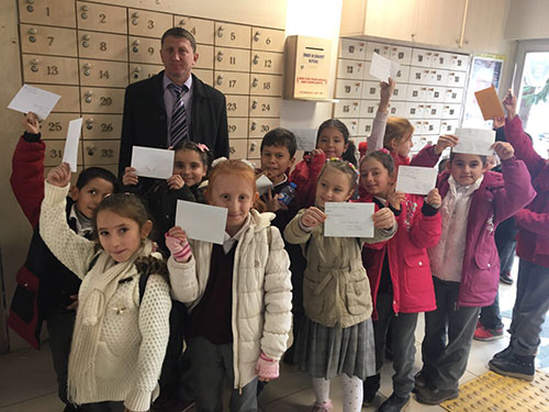 İlk olarak P.T.T müdürlüğünü ziyaret eden minikler işleyiş hakkında sorular sorduktan sonra kardeş sınıf oldukları Mersin Sorgun Bademli ilkokulu 4.sınıf öğrencilerine mektup gönderdiler.