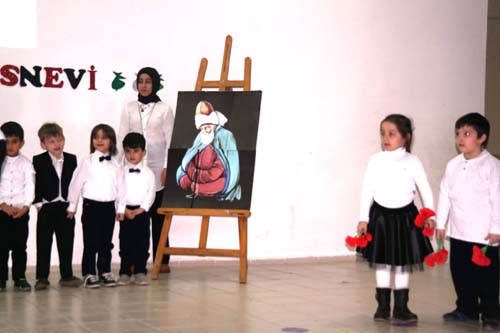 Okul Müdürü Nuriye Ünal’ın Açılış Konuşmasın’da Gel ne olursan ol yine gel demiş.. Hz. Mevlana. Onu anmak ve çocuklarımıza anlatmak için toplandığımız bu gecede; bize düşen de hoş geldiniz demek.
