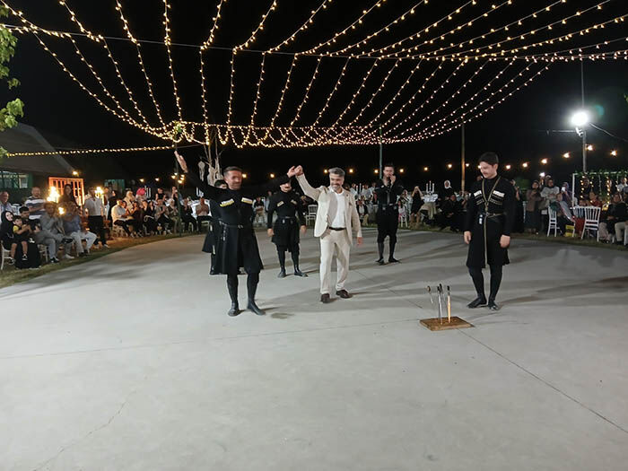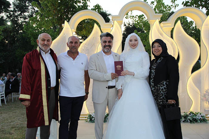 Hendek Belediye Başkanı İrfan Püsküllü’nün kıydığı nikah töreninin ardından Adapazarı Anadolu İmam Hatip Lisesi hafız öğrencilerinden Raşit Çetin’in okuduğu Kur’an-ı Kerim Tilavetinin duasını Orhan Caminin emekli İmam Hatibi Mustafa Aydın hoca yaptırdı. Yemek ikramı ve takı töreniyle devam eden düğünde İstanbul Kafkas Dans Organizasyonu ekibinin ‘Kazbeguri’ gösterisi büyük beğeni topladı.