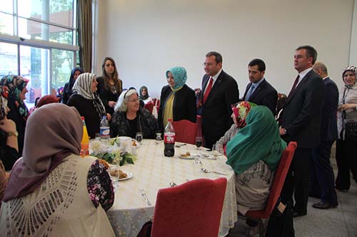 Aile ve Sosyal Politikalar Bakan Yardımcısı Çiğdem Erdoğan Atabek, Bakan Ayşenur İslam’ın programı nedeniyle katılamadığını belirterek selamını iletti. Atabek, Aile ve Sosyal Politikalar Bakanlığı’nın yapmış olduğu faaliyetlerden bahsederek “ Yapılan düzenlemeler ile, 15 mayıs 2015 tarihinden itibaren geçerli olacak olan, doğum yardımı ile ilgili başvurular Aile ve Sosyal Politikalar İl Müdürlüğü ve sosyal hizmetler müdürlüğüne yapılacak. Yeni doğan çocuklarımıza ilk desteği devletimiz yapsın istedik. Biz istiyoruz ki çalışan anne hem çalışsın hem anne olsun. Çocuğuna bakacak kimse yoksa yarı zamanlı tam ücretli çalışma imkanı veriliyor. Annelerimiz hem çalışıp, hem kariyer yapabilir hemde anne olabilir. Kreşler yapılıyor, anneler çocuklarını rahatlıkla bırakıp, işlerine gidebilirler. Kadın girişimciler için mikro kredi imkanlarımız var, yeterki hanımlar birşeyler yapmak istesin “ Dedi.