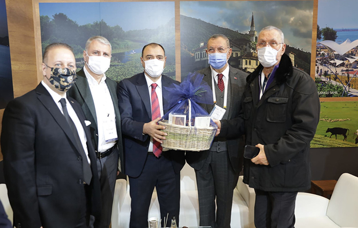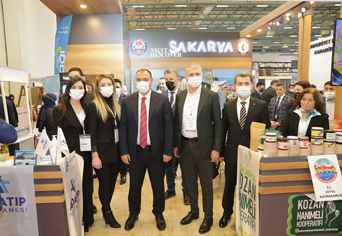 İlk gününde en çok ilgi gösterilen stantlar arasında yer alan Sakarya standında katılımcılar, iş insanları ve ziyaretçilerle yakından ilgilenerek İlimizin turizm potansiyeli üzerine bir süre sohbet eden Vali Kaldırım, buralarda ağırlanan misafirlere Sakarya’nın yöresel ürünlerini tanıtarak kendilerine hediye etti.