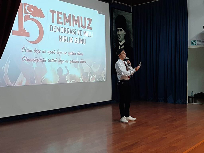 Saygı Duruşu ve İstiklal Marşının okunması ile başlayan program, günün anlam ve önemini anlatan konuşmaların ardından öğrencilerin okudukları şiirler ile devam etti. Ardından Anadolu Ajansı arşivlerinden oluşturulan 15 Temmuz Hain Darbe Girişinin video gösterimi yapıldı.