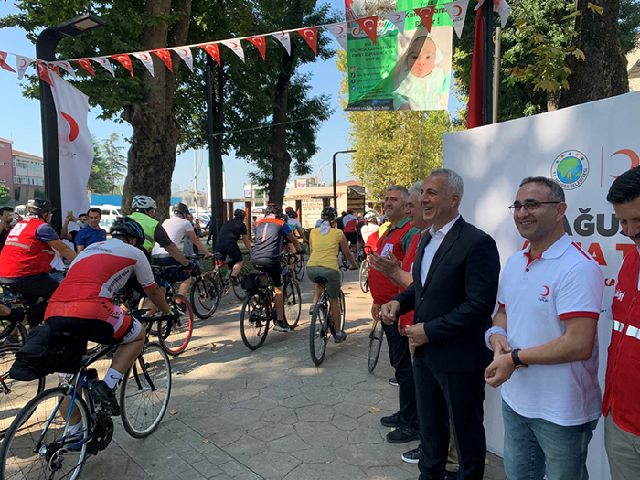Konuşmaların sona ermesinin ardından Başkan Turgut Babaoğlu, Afet Yönetimi Genel Müdürü Özer, Şube Başkanı Cevdet Koç ve Kızılay heyeti Sakaryapark’ta tamamlanacak olan pedal çevirme etkinliğinin startını düdük çalarak verdiler. Alınan güvenlik tedbirlerinin eşliğinde bisiklet tutkunları pedal çevirdi.