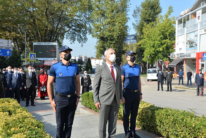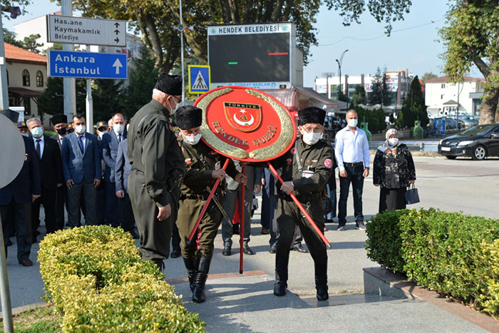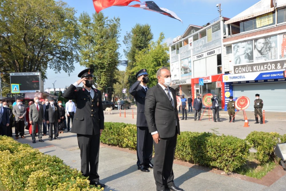 Hendek Cumhuriyet Alanı Atatürk Anıtı önünde gerçekleşen törene, Hendek Kaymakamı Halil İbrahim Acır, Hendek Belediye Başkanı Turgut Babaoğlu, Hendek Cumhuriyet Başsavcısı Ayhan Yenilmez, Hendek İlçe Emniyet Müdürü Şevket İlhan, Hendek İlçe Jandarma Komutanı Yüzbaşı Sercan Candan, Türkiye Muharip Gaziler Derneği Başkanı Ferhat Albayrakoğlu, Milliyetçi Hareket Partisi (MHP) İlçe Başkanı Burhan Namlı ve yönetimi, askeri erkan, emniyet personelleri ve protokol üyeleri katıldı.