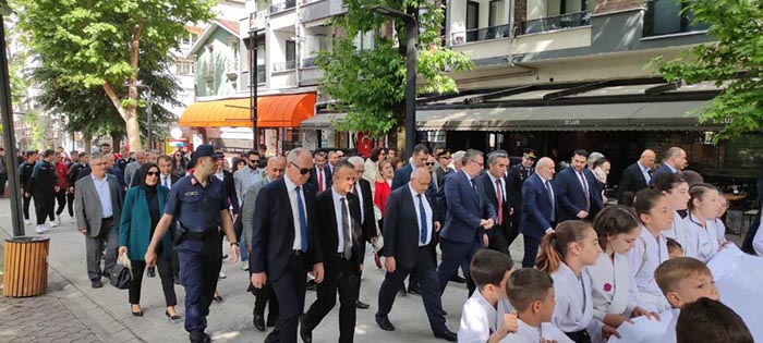 Yürüyüşün ardından Cumhuriyet Meydanında bulunan Atatürk anıtına çelenk sunma töreni ile devam edip, Yeni Spor Salonunda son buldu.
