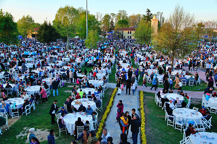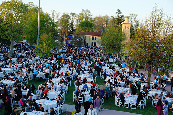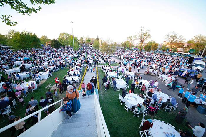 Park içinde kurulan masalar yollara uzandı, Ramazan’ın en mübarek günü olan Kadir Gecesi’nde dualar hep birlikte yapıldı. Salgının gölgesinde geçen 2 buçuk yılın ardından kalabalık toplulukların bir araya geldiği ilk büyük organizasyonda binlerce kişi aynı sofrada oruç açtı.