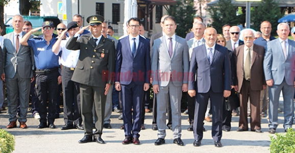 30 Ağustos Zafer Bayramının 96. Yıldönümü münasebetiyle Hendek Cumhuriyet alnında düzenlenen törene, Hendek Kaymakamı Orhan Burhan, Hendek Belediye Başkanı İrfan Püsküllü, Hendek Cumhuriyet Savcısı Mustafa ÖzyürekHendek Askerlik Şubesi Başkanı Cihat Turan, Ak Parti Hendek İlçe Başkanı Ali Kemal Sofu, MHP Hendek İlçe Başkanı Turgut Babaoğlu, CHP Hendek İlçe Başkanı Reyhan Azak, Belediye Meclis Üyeleri, Kurum ve Daire Müdürleri, Sivil Toplum Kuruluşları temsilcileri ile Vatandaşlar katıldı.