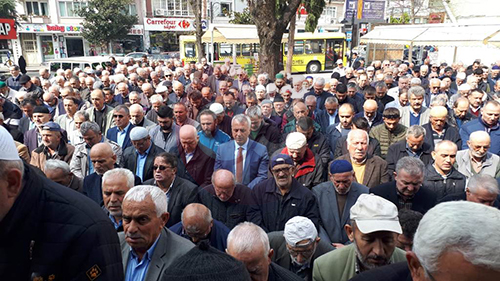 Cuma namazına müteakip kılınan cenaze namazına MHP Grup Başkanvekili M. Levent Bülbül, Belediye Başkanı Turgut Babaoğlu, Siyasi parti Başkan ve temsilcileri, STK Temsilcileri ve çok sayıda vatandaş katıldı.
