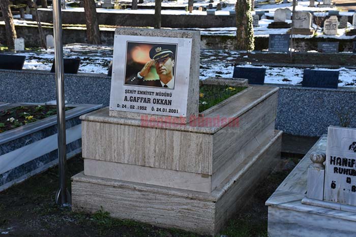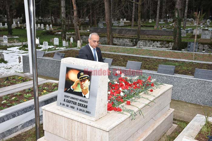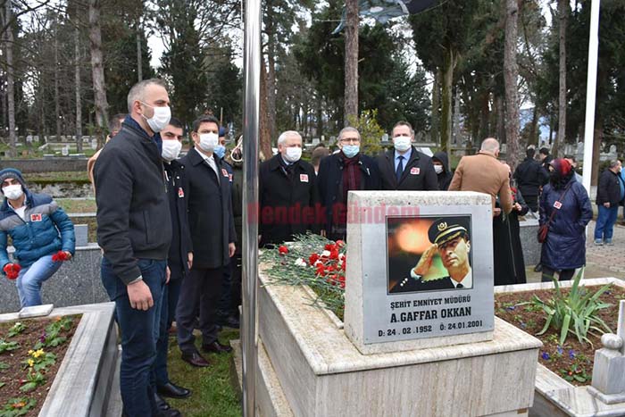 24 Ocak 2001’de Diyarbakır Emniyet Müdürlüğü görevindeyken uğradığı hain terör saldırısında yanındaki 5 polis memuruyla birlikte şehit düşen Ali Gaffar Okkan, Sakarya’nın Hendek İlçesinde bulunan mezarı başında anıldı.