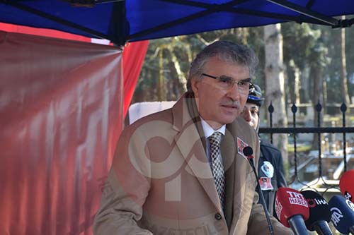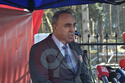 Daha sonra söz alan MHP Grup Başkanvekili M.Levent Bülbül, “ Şehidimiz Ali Gaffar Okkan’ışehadete erdiği bu günde kabri başında saygıyla ve rahmetle anıyorum. Sayın Genel Başkanımız Devlet Bahçeli Bey, yoğun programı nedeniyle bu törene davetli olmasına rağmen katılamadı. Bu vesileyle Genel Başkanımızın duygu ve düşüncelerini aynı şekilde dile getirmek istiyorum. A. Gaffar Okkan büyüğümüz bu memleketin evladı nasıl olunur ve bu memleketin her karışı benim vatanımdır sözünü uygulamalarıyla hepimize öğretmiş olan örnek bir şahsiyettir. Terörün hedefi olması tesadüfi bir mesele değildir. Görev yaptığı bölgelerde yaşamı imkansız hale getirmek noktasında faaliyetler yürüten teröre karşı, oralarda hayatı normalleştirip, vatandaşlarımızla kucaklaşmıştı. Dün olduğu gibi bugünde terörle mücadele büyük bir kararlılıkla yürütülmektedir. Bu mücadelede en büyük cesaret kaynağımız şehitlerimizdir. Türk milleti ve vatanımız için tüm tehdit ve tehlikelere karşı yılmadan mücadele edeceğiz. Şehidimiz A.Gaffar Okkan başta olmak üzere, 5 silah arkadaşına ve tüm şehitlerimize Allah’tan rahmet, ailelerine ve milletimize başsağlığı diliyorum” dedi