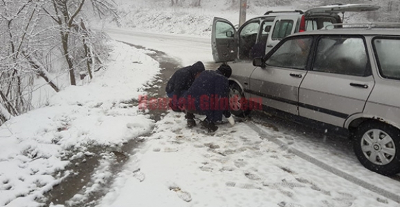 Sürücüler rampaları aşabilmek için zincir takarak yola devam etti.