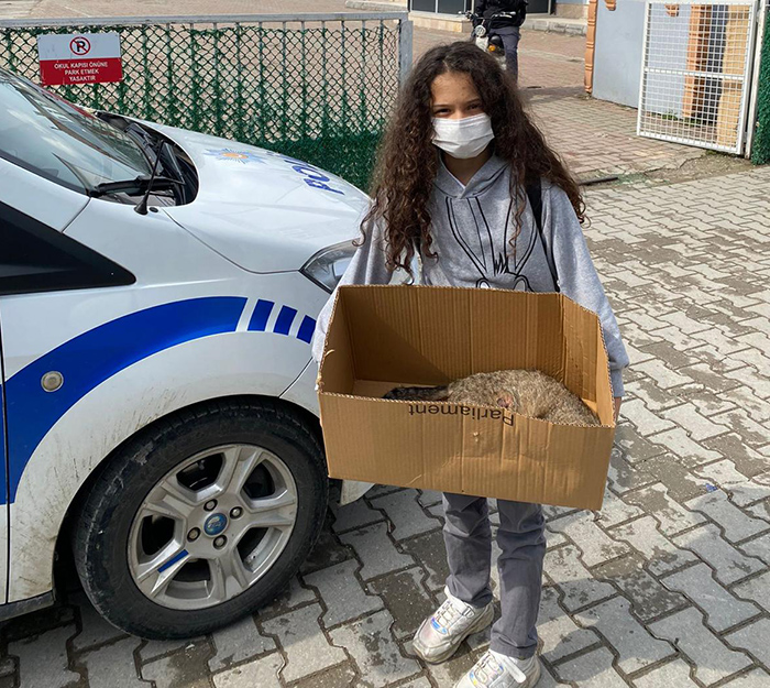 Edinilen bilgilere göre, Hendek’te 5. Sınıf Öğrencisi olan Asya Taş, okul çıkışı evinin yanında hamile bir kedinin zor durumda olduğunu görerek durumu Hendek İlçe Emniyet Müdürlüğünde Polis memuru olarak görev yapan babasına haber verdi.