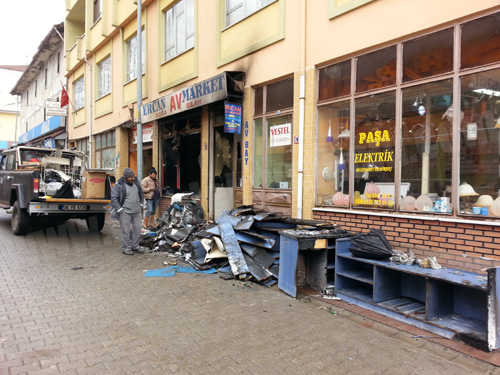 Başpınar Mahallesinde bulunan Ercan Yılmaz’a ait olan Ercan Av Bayii’nde yangın çıktı. Yangını gören diğer dükkân sahibi esnaflar hemen Polise ve İtfaiyeye haber verdi.
