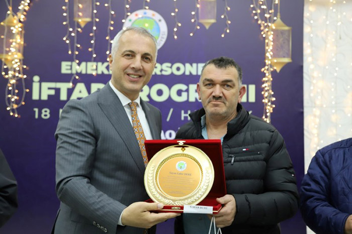 Başkan Babaoğlu, yaptığını konuşmanın ardından emekli olan personelleri tek tek tebrik ederek hizmetlerinden dolayı teşekkür plaketi takdim etti.