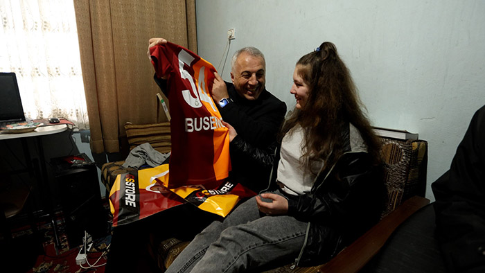 Sosyal medya hesabından Galatasaray taraftarı olduğu da anlaşılan Busenur’a ayrıca özel hazırlık yapıldı. Başkan Babaoğlu, 54 numaralı Busenur yazılı Galatasaray forması ile birlikte çeşitli hediyeler verdi.