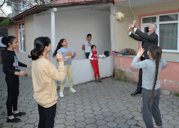 Sosyal mesafe kurallarına uyarak vatandaşlara selam veren Başkan Babaoğlu, çocuklarla fotoğraf hatıra fotoğrafı çekilerek oyunlarına ortak oldu.