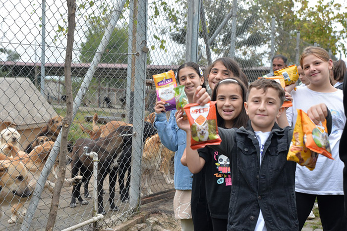 Ziyarete çok sayıda öğrenci öğretmenleriyle birlikte katılırken, Geçici Bakımevinde bulunan can dostlarını kucaklayıp sevgi gösterisinde bulunan öğrenciler ayrıca can dostlarına mama ve su ikram ettiler.