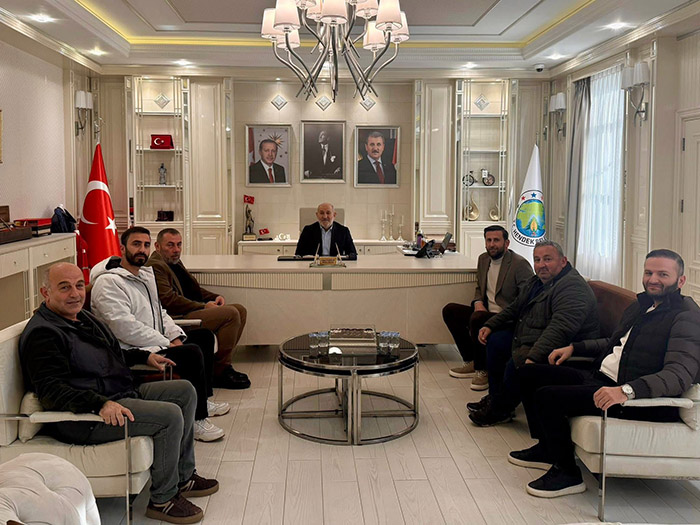 Hendek Şoförler ve Otomobilciler Odası Başkan Adayı Selim Meraklı, beraberinde Yönetim Kurulu Üyeleri ve Hendekspor Başkanı Sadettin Meraklı ile birlikte Hendek Belediye Başkanı İrfan Püsküllü’yü makamında ziyaret etti.