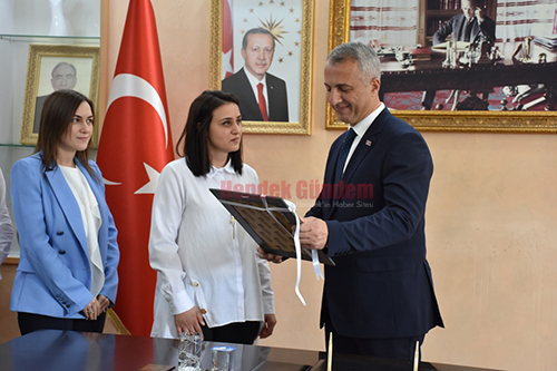 Hendek Belediyesi İmar İşleri Personeli Hendek Belediye Başkanı Turgut Babaoğlu’na Hayırlı olsun ziyaretinde bulunurken, Belediye Başkanlığı koltuğuna oturan Babaoğlu için anlamlı bir hediye verdiler.