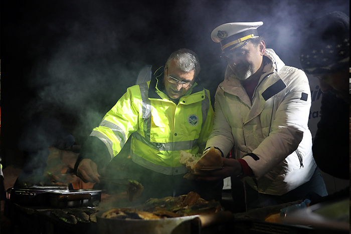 Ekiplere balık ikramını kendisi yapan Başkan Yüce, Bölgemizde çok ciddi bir kar yağışı yaşandı. Meteorolojiden aldığımız veriler doğrultusunda ilk günden hazırlıklara başladık. Bürokratlarımızla bir araya geldik ve gerekli önlemlerimizi aldık. Tüm imkânlarımızı seferber ettik. 1 haftalık süreç içerisinde hamdolsun büyük bir sorunla karşılaşmadık. Ekip arkadaşlarımızla birlikte 24 saat esasıyla görev başında olduk. Bugün de ekiplerimizi motive etmek, yanlarında olmak için bir araya gelelim istedik. İlçe belediyelerimizle koordineli bir şekilde sürdürdüğümüz çalışmalarda emek gösteren, özveriyle hareket eden tüm çalışma arkadaşlarıma teşekkür ediyorum.