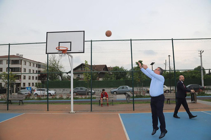 Basketbol sahasında kısa bir ter atan MHP kurmayları, ardından futbol sahasında miniklerle maç oynadı.