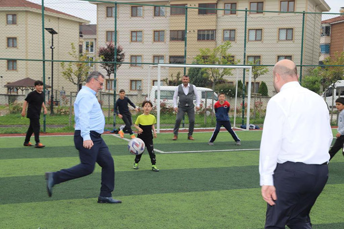 Kıran kırana geçen mücadelede sahaya çıkan Alkaş, Namlı, Babaoğlu ve Yaz burada çocuklarla birlikte maç oynadı.