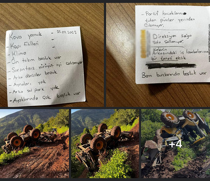 Çamlıcada çalışan mevcut makinayı alıp bana arızalı bi makina verdiler. Makinanın arızalarını defalarca dile getirsemde ilgilenmediler ve Bakacak mevkinde seyir halindeyken makinanın ön defransiyalini tutan pim yerinden çıktı kaza yapıyordum makinayı zar zor kontrol altına aldım.