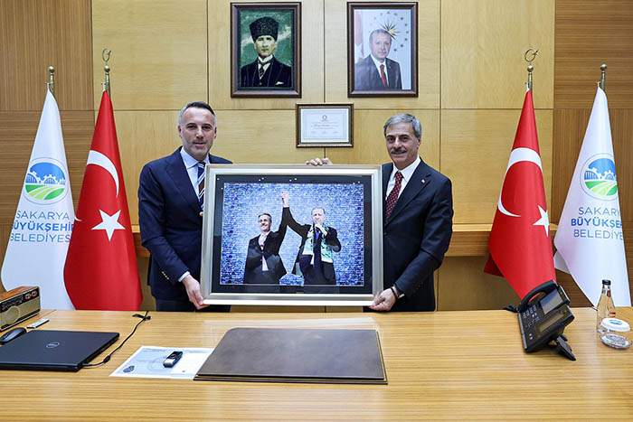 Sakarya Büyükşehir belediye Başkanı Yusuf Alemdar, AK Parti İl Başkanı Yunus Tever ve yönetimini ağırladı. Büyükşehir Belediye Başkanlığı görevine seçilen Başkan Alemdar’ı tebrik eden Tever, günün anısına tablo hediye etti. Ziyaretten duyduğu memnuniyeti dile getiren Başkan Alemdar ise, “İl başkanımıza ve yönetim kuruluna ziyaretleri için çok teşekkür ediyorum. Kendilerini belediyemizde ağırlamaktan onur duyduk. Rabbim birliğimizi daim eylesin” dedi.