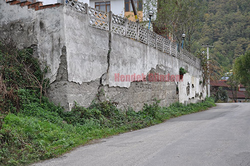 Hendek Dikmen Grup yolu Aksu Mahallesi Kız kalesi mevkiinde bulunan grup yolu ile paralel olan duvar tehlike arz ediyor.