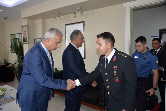 Atatürk Anıtı'na çelenk sunumunun yapılmasının ardından Kaymakamlık makamında tebrikler kabul edildi.