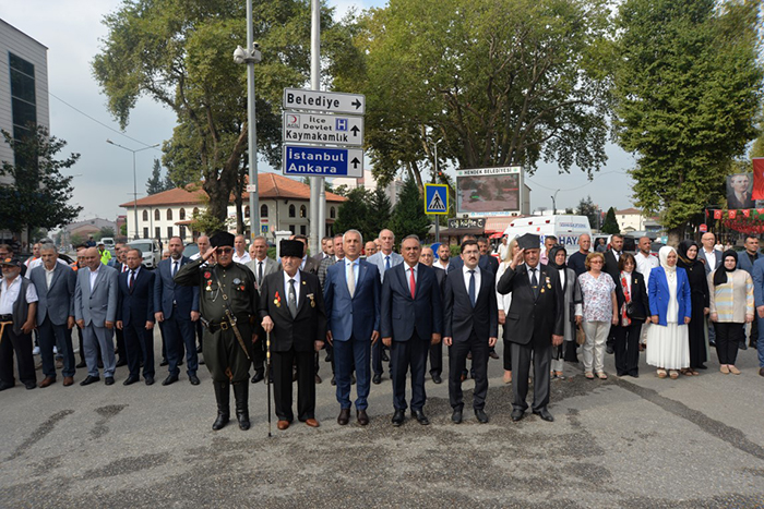 Cumhurbaşkanı Recep Tayyip Erdoğan'ın 30 Ağustos Zafer Bayramı mesajı okunurken, ardından Hendek Askerlik Şubesi Başkanı Personel Ast. Teğmen Erdem Güler tarafından günün anlam ve önemini belirten konuşma gerçekleştirdi. Konuşmaların sonunda Yenimahalle Mesleki ve Teknik ve Anadolu Lisesi Öğrencileri ile Sakarya Kuvayi Milliye Derneği Eski Başkanı Nuri Çamur tarafından günün anısına şiir okundu. Tören Kaymakamlık makamında Hendek Kaymakamı Halil İbrahim Acır, Belediye Başkanı Turgut Babaoğlu’nun tebrikleri kabulü ile sona erdi.