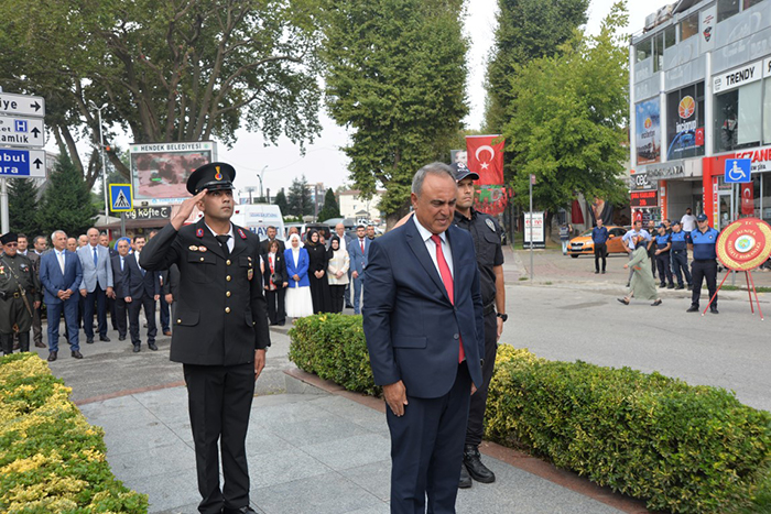 Hendek Cumhuriyet Meydanında düzenlenen Çelenk sunma törenine Hendek Kaymakamı Halil İbrahim Acır, Hendek Belediye Başkanı Turgut Babaoğlu, Hendek Cumhuriyet Başsavcısı Ayhan Yenilmez, İlçe Jandarma Komutanı Süleyman Sercan Candan, Gaziler, Siyasi Partilerin İlçe Başkanları, Askeri erkan, Bürokratlar, Daire müdürleri, Sivil toplum kuruluşlarının temsilcileri, Muhtarlar, Okul müdürleri, Öğretmenler ve öğrenciler ile çok sayıda vatandaş katıldı. Tören, Atatürk Anıtı'na çelenk konulmasının ardından saygı duruşunda bulunuldu ve İstiklal Marşı Okundu