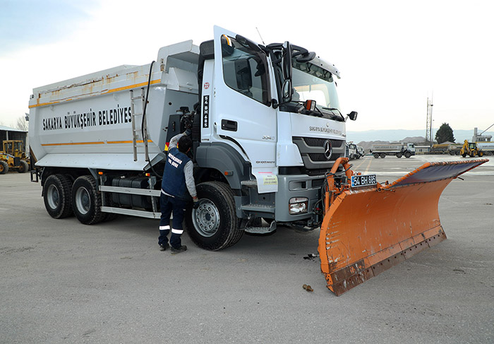 Sakarya Büyükşehir Belediyesi meteorolojik verileri dikkate alarak karla mücadele çalışmalarında kullanılacak araçları hazırlamaya başladı. Zorlu hava koşullarına karşı yol bakım ve onarım filosunda kullandığı araçları revize eden ekipler, Büyükşehir Belediyesi’nin envanterinde bulunan asfalt kamyonlarının arka haznesini sökerek yerine tuz kasası ve serpme aparatı yerleştiriyor, araçların ön kısımlarına da kar küreme bıçakları takılıyor.
